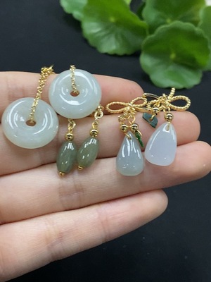 F36247857 Jadeite Inlaid Earrings Sell as a Lot (Non-Gold Inlaid) (Beads Non-Grade A)