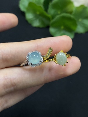F36247909 Jadeite cabochon inlay ring, non-gold inlay, adjustable