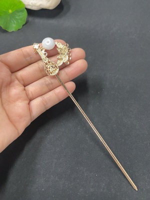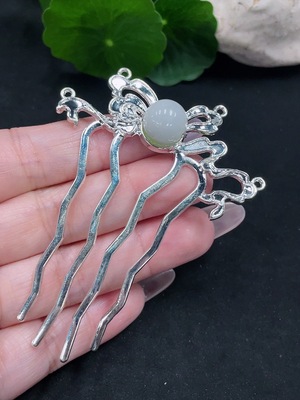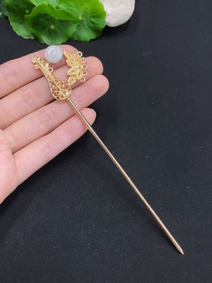 F35192392 Jadeite Bead Inlaid Hairpin Non-Gold Inlaid Total Weight Approximately 9.2g