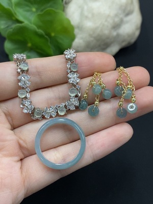 F35090876 Jadeite Cabochon Inlaid Bracelet/Earrings/Ring Non-Gold Inlay Sell as a Lot