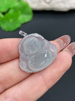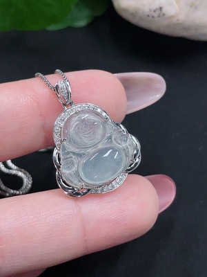 F37422679 Jadeite Pendant Buddha with 18K Clasp and Diamond Accents, Total Weight Approx. 4.36g