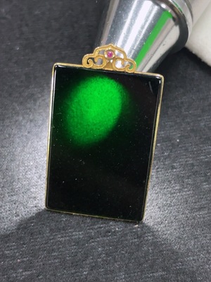 F33917325 Jadeite Inlaid Pendant, No Imprint, Surface Gold Content 64%, Total Weight Approximately 2.5g