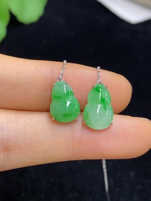 F37397430 Jadeite Gourd Inlaid Earrings 18k Total Weight Approximately 2.11g