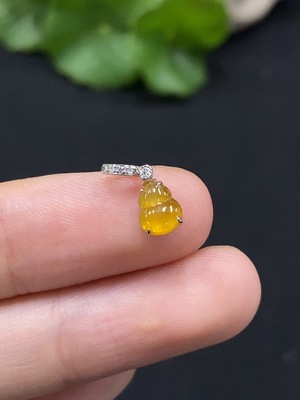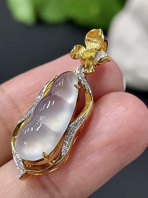 F35190613 Jadeite Gourd Inlaid Pendant 18K Gold with Diamond, Total Weight Approximately 0.38g