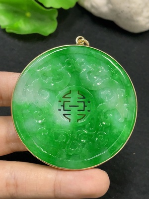 F26974221 Jadeite Blessed Bean Pendant, 18k Gold Setting, Total Weight Approx. 3.47g