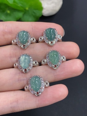 F37429437 Jadeite Pi Xiu Inlaid Ring Sell as a Lot Non-Gold Inlaid Adjustable Size