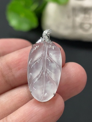 F34058884 Jadeite Leaf Pendant with 18K Gold and Diamond Setting, Total Weight Approximately 3.16g