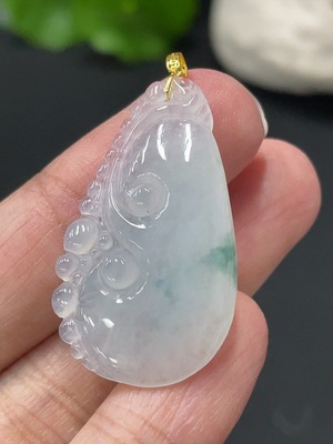 F32821049 Jadeite Ruyi Pendant with 18K Gold Clasp, Total Weight Approximately 2.5g
