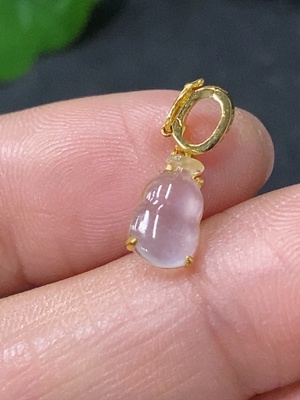 F36212127 Jadeite inlaid gourd pendant with 18k gold and diamond accents, total weight approximately 0.43g