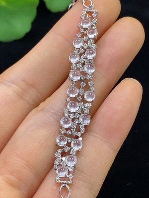 F36250003 Jadeite Cabochon Inlaid Bracelet 18k with Diamond Accents, Total Weight Approx. 6.05g