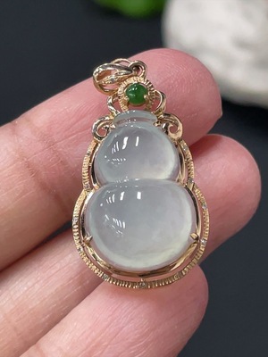 F30518918 Jadeite Gourd Inlaid Pendant with 18K Gold, Total Weight Approximately 3.05g