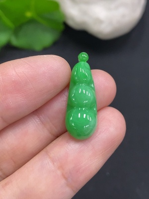 F35132141 Jadeite auspicious bean pendant with 18K gold and diamond accents, total weight approximately 5.38g