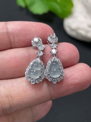 F36254113 Jadeite gourd inlaid earrings pair, non-gold inlaid, total product weight approximately 3.4g