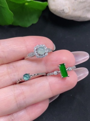 F34069364 Jadeite Inlaid Ring Sell as a Lot (Non-Gold Inlaid) (Adjustable)