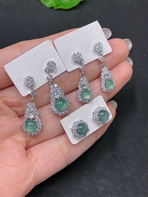 F35104036 Jadeite Inlaid Earrings Non-Gold Sell as a Lot