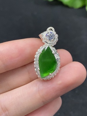 F34033229 Jadeite gourd inlaid pendant 18k set with diamonds (only round diamonds on both sides of the main body) total weight approx. 4.07g
