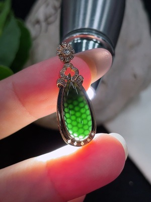 F31685966 Jadeite Gourd Pendant with 18K Gold Setting, Total Weight Approx. 2.7g (Diamond Accents)