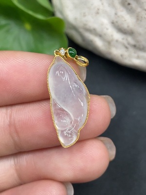 F21379058 Jadeite Leaf Inlaid Pendant 18k Gold Inlaid Total Weight Approx. 2.9g