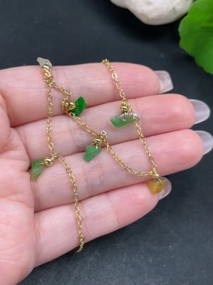F35140601 Jadeite Freeform Inlay Pendant with 18K Gold Pendant, Non-Gold Other Parts, Non-Grade A Chain, Total Weight Approx. 12.1g