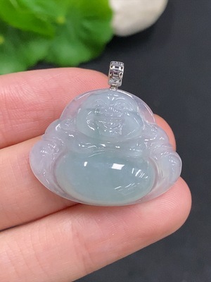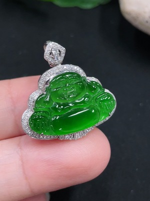 F28241945 Jadeite Buddha Pendant with 18K Gold Clasp, Total Weight Approximately 2.6g