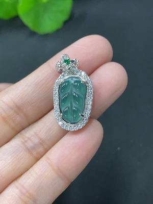 F23695020 Jadeite Inlaid Leaf Pendant Non-Gold Total Weight Approx. 5.05g