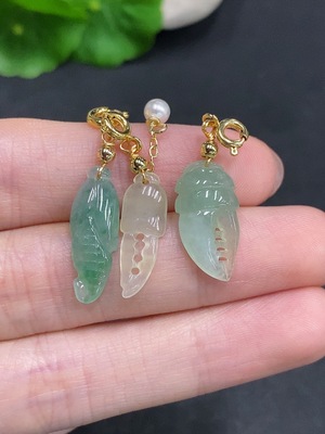 F28248438 Jadeite Earrings with 18K Gold Setting, Total Weight Approximately 2.6g