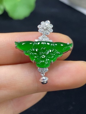 F35143143 Jadeite Auspicious Life Pendant Total weight about 9g 18k gold inlaid with diamonds
