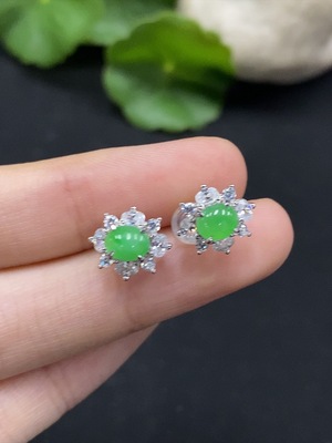F33832781 Jadeite Cabochon Earrings (Non-Gold Setting, Total Weight Approx. 4.65g)