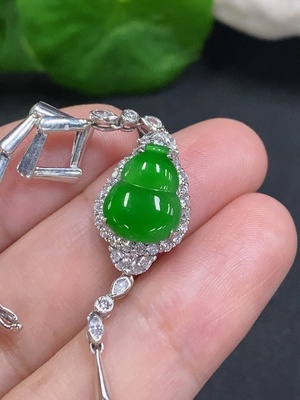 F35191086 Jadeite Gourd Inlaid Pendant, 18K Gold Pendant, Non-Gold Chain, Total Weight Approximately 1.49g Excluding Chain, Set with Diamonds
