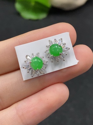F36221977 Jadeite inlaid earrings a pair, total weight about 4.3g (non-gold inlaid)