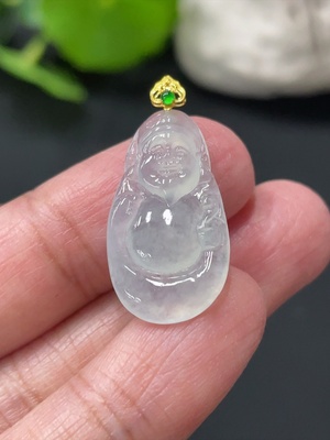 F35156126 Jadeite Buddha Pendant with 18k Gold Clasp, Total Weight Approximately 5.4g