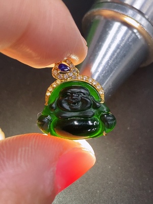 F23556363 Jadeite Buddha Pendant with 18k Gold Setting, Total Weight Approximately 13.9g