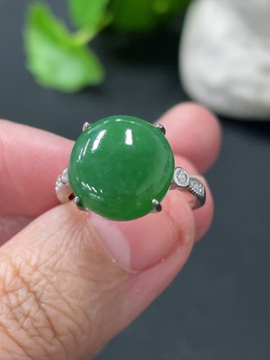 F36267295 Jadeite Cabochon Inlaid Ring Non-Gold Setting Adjustable Size Total Weight Approx.4g
