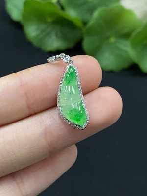 F32741015 Jadeite leaf pendant with 18K gold mounting, total weight approx. 4.8g (set with diamonds)
