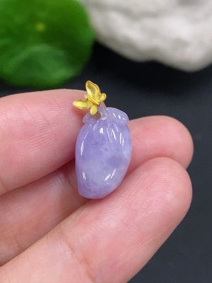 F26966002 Jadeite Gourd Pendant with 18k Gold Clasp, Total Weight Approximately 2g
