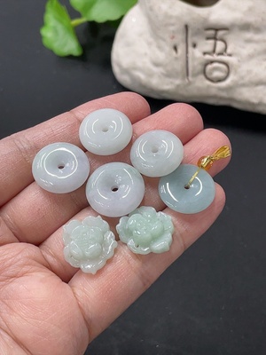 F33882570 Jadeite Auspicious Bean Inlaid Pieces Sell as a Lot