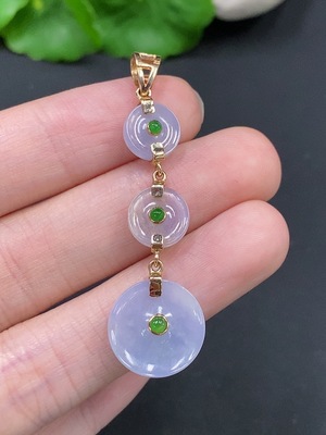 F34973374 Jadeite Pendant Peace Buckle with 18k Gold and Diamond Accents, Total Weight Approximately 15.38g