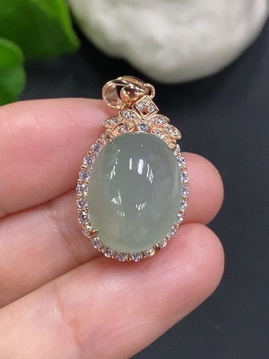 F33919905 Jadeite Inlaid Pendant 18K Gold Total Weight Approx. 1.3g (with Diamond Accents)