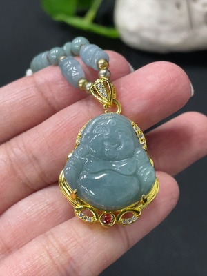 F35172089 Jadeite Buddha Pendant with Inlay Non-Gold Inlay Chain Not Grade A Total Weight Approx. 17.9g