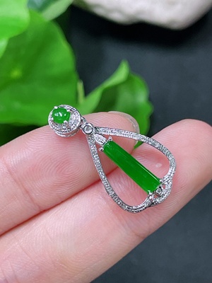 F35166313 Jadeite cabochon mounted ornament, non-gold mounting