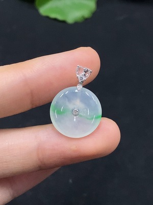 F30441615 Jadeite Safety Buckle Pendant in 18K Gold, Total Weight Approx. 1.9g (Diamond Accented)