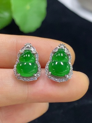 F36251153 Jadeite Gourd Inlaid Earrings Non-Gold Total Weight Approx. 2.72g
