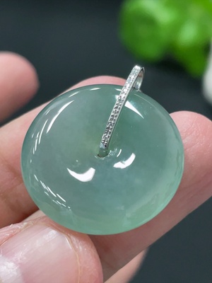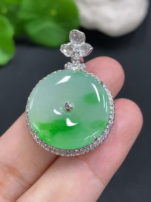 F37444945 Jadeite cabochon pendant with 18K gold mounting, total weight approx. 19g (accented with diamonds)