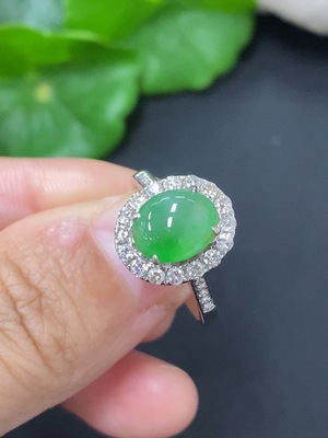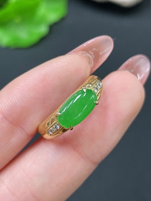 F37354400 Jadeite cabochon ring in 18K gold size 13 total weight approx.1.3g (with diamond accents)