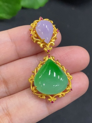 F37355365 Jadeite inlaid pendant (no imprint, gold content tested Au75%)