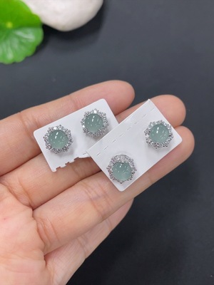 F33926672 Jadeite Cabochon Earrings Non-Gold Setting Total Weight Approx. 2.79g