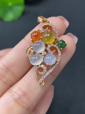 F34977942 Jadeite Inlaid Gourd Pendant 18k with Diamond Accent Total Weight Approximately 5.3g