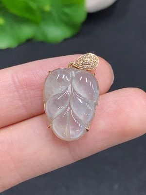 F33906431 Jadeite Leaf Pendant with 18K Gold and Diamond Accents, Total Weight Approx. 2.3g