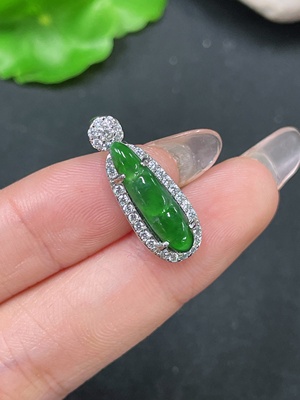 F36220993 Jadeite Lucky Bean Inlay Pendant Non-Gold Inlay Total Weight Approx. 13.2g Non-Grade A Supporting Stones