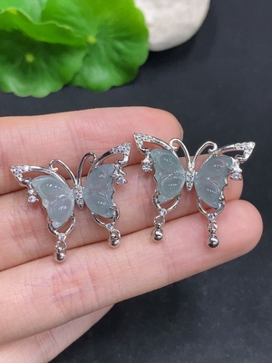 F29322510 Jadeite inlaid earrings, total weight approx. 1.7g (non-gold inlaid)